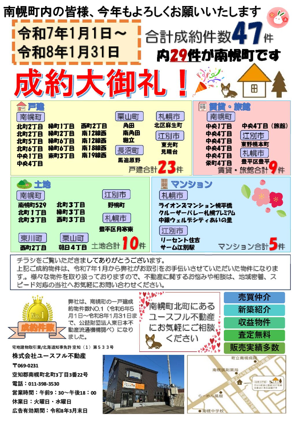 南幌町以外でも数多くの取引実績がありますので、売却や不動産に関するお悩みなどございましたら、地域密着・スピード対応の弊社へご相談ください。